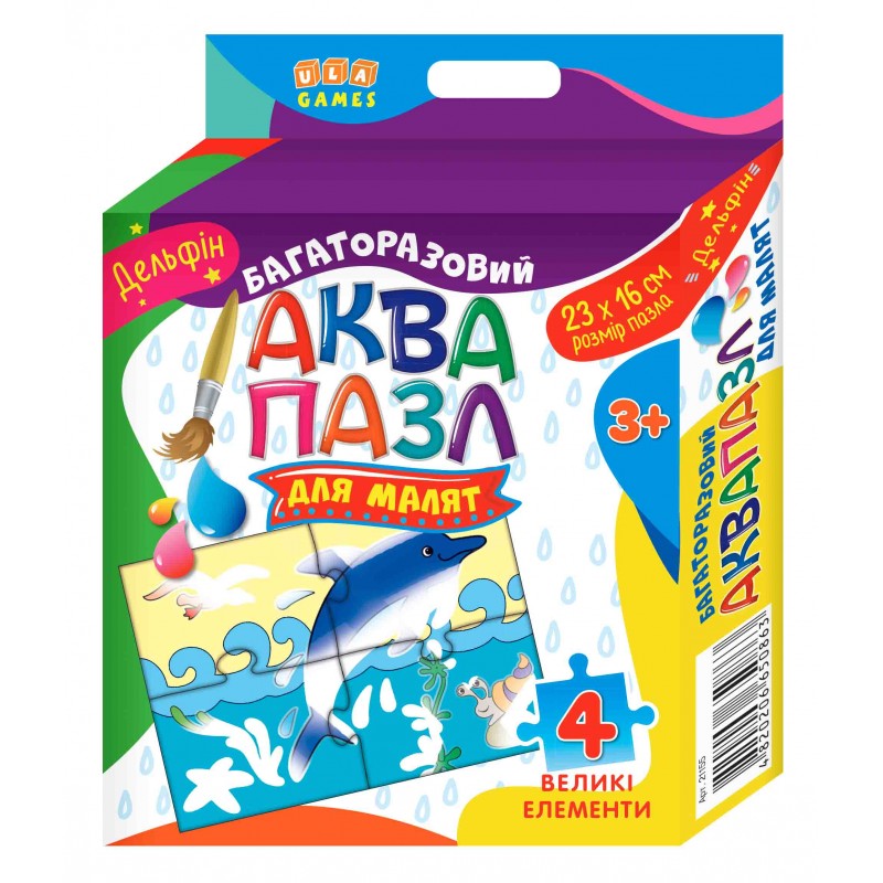 Багаторазовий аквапазл містить чотири великі елементи, склавши які, малюк отримає зображення морських мешканців. Зібраний пазл потрібно розфарбувати змоченим у воді пензликом. Після того як пазл висохне - малюнок зникне, і його можна розфарбовувати знову! Аквапазл стане захопливим заняттям для маленьких художників, а також для малят, які тількі вчаться малювати.